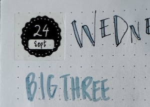 I leafed through two Bullet Journals to figure out what day I started doing this and noticed that, in the first month or so, there were quite a few days where I didn’t list a Big Three. It clearly took me awhile to get into the habit and remember to come up with it. Now it’s ingrained (though I give myself the weekend off).